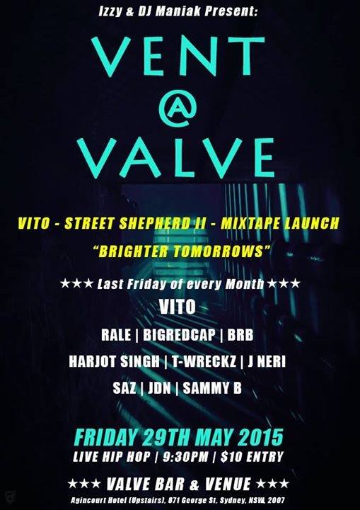 Vent is a Hip Hop Night held on the Last Friday of every Month @ The Valve Bar. (Upstairs @ Agincourt Hotel )