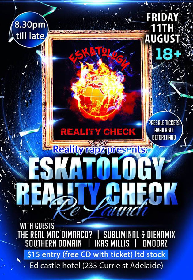 Come check out the official Relaunch of Eskatology's Reality Check Album,