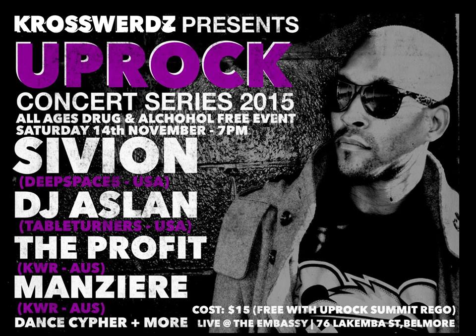 One show only in Sydney as part of the annual Uprock Christian Hip Hop Summit 2015.