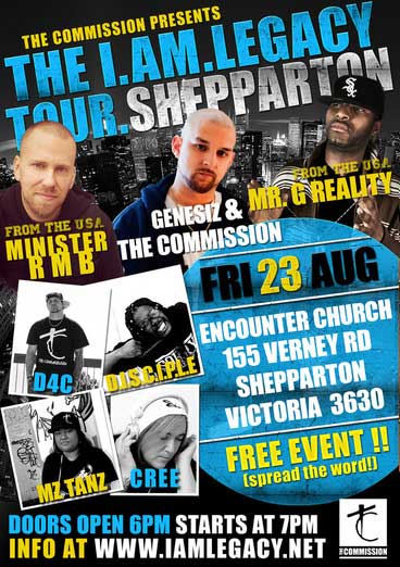 The Commission are proud to announce that Mr G. Reality from Chicago, and Minister RMB from Sacramento will be headlining this years I.AM.LEGACY Tour with us in August.
